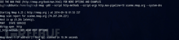 另外,我們可以設置http.max-pipeline參數來控制http管道的最大值。如果設置了該參數,nmap會自動忽略http.pipeline。