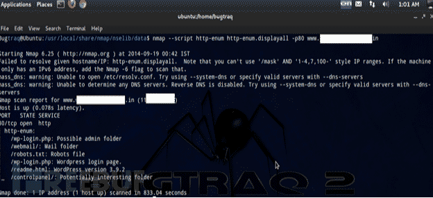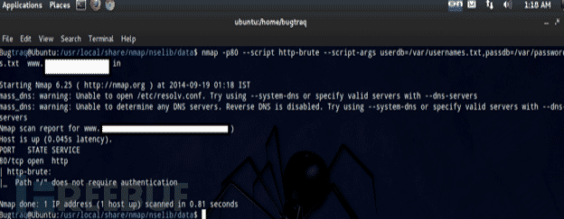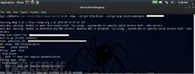 這是在滲透測試中常見的任務,通常沒法手動完成。經常討論的Web應用程序的脆弱性有目錄列表,用戶賬戶枚舉,配置文件等。用Nmap的NSE可以更快的幫助我們完成這個任務。