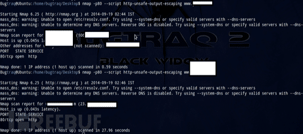 該腳本http-unsafe-output-escaping是由Martin Holst Swende編寫,它會檢測基于用戶輸入的輸出可能出現的問題,該腳本發(fā)送以下內容到它發(fā)現的所有參數:ghz%3Ehzx%22zxc%27xcv