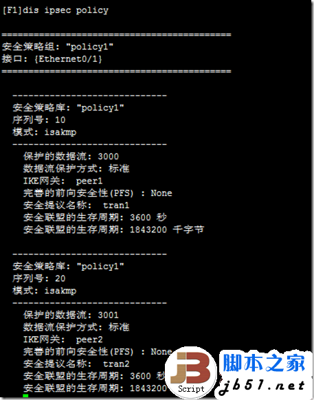 [F1-ipsec-policy-isakmp-policy1-10]proposal tran1 引用安全提議