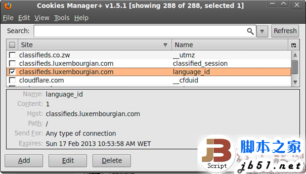 打開cookie管理器,然后單擊目標(biāo)網(wǎng)站
