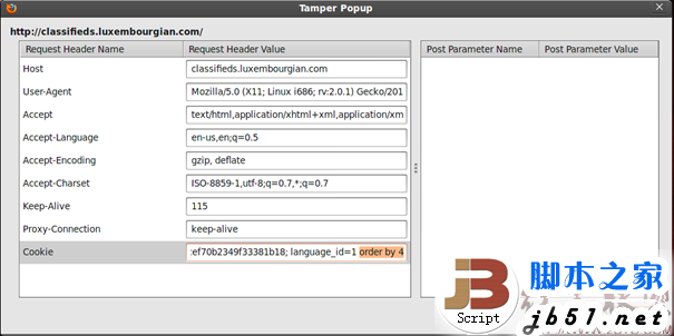 所以可以判斷得出用戶表列為4,再使用cookie管理器,添加以下代碼在language_id字段里面: