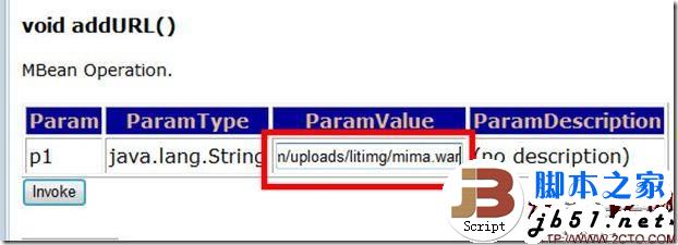 咱們繼續(xù)說上傳的事吧,在下面找到的void addURL(),即可上傳木馬,輸入木馬的地址(war壓縮文件webshell的url地址),點擊Invoke.