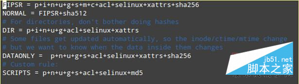 比如說(shuō),上述例子意味著,NORMAL規(guī)則將檢查下列屬性方面的不一致性:權(quán)限(p)、索引節(jié)點(diǎn)(i)、鏈接數(shù)量(n)、用戶(u)、用戶組(g)、大小(s)、修改時(shí)間(m)、創(chuàng)建時(shí)間(c)、訪問(wèn)控制列表(acl)、SELinux(selinux)、xattrs(xattr)以及SHA256/SHA512校驗(yàn)和(sha256和sha512)。