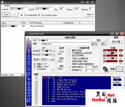 我們找到一個(gè)目標(biāo)。首先用工具掃描了一下,顯示沒有注入點(diǎn),用Webtool只掃到了后臺(tái),也沒發(fā)現(xiàn)社區(qū)程序,看來從網(wǎng)站下手不太可能了。再來看下系統(tǒng)的安全性怎么樣,從IIS寫權(quán)限掃描器的結(jié)果看不存在IIS寫入漏洞,用Superscan刺探端口信息,如圖1所示,居然開了3389。利用遠(yuǎn)程終端登錄一下得知系統(tǒng)是Windows 2003系統(tǒng),現(xiàn)在基本可以確定服務(wù)器的構(gòu)架了:Windows 2003 IIS6.0 MSSQL asp。