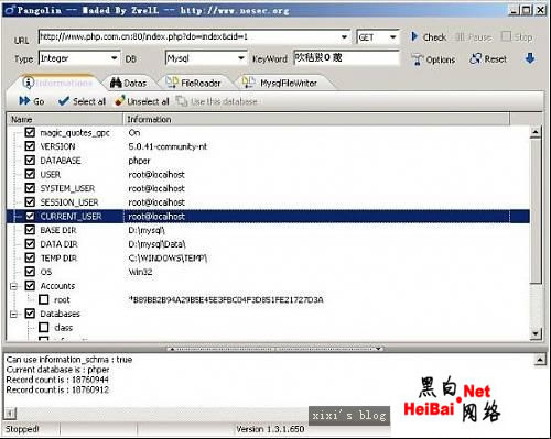 因為在檢測的時候發(fā)現(xiàn)是mysql的root,直接找工具pangolin,讀文件吧,怎么讀文件也是很有技巧的,這里不多說,讀到setting.php,終于讀到root的密碼了.