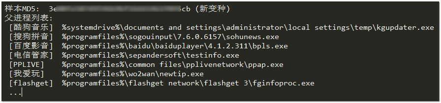 [11] 2015年某次掛馬事件涉及的彈窗客戶端進(jìn)程列表
