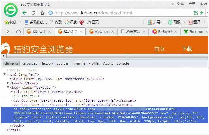 在我們?nèi)粘5陌踩\(yùn)營(yíng)過程中也經(jīng)常接到疑似運(yùn)營(yíng)商劫持的用戶反饋,下面講述一個(gè)非常典型的http劫持跳轉(zhuǎn)案例,用戶反饋打開獵豹瀏覽器首頁(yè)點(diǎn)擊下載就會(huì)彈出廣告頁(yè)面,經(jīng)過我們的檢測(cè)發(fā)現(xiàn)用戶的網(wǎng)絡(luò)被運(yùn)營(yíng)商劫持,打開網(wǎng)頁(yè)的數(shù)據(jù)包中被注入了廣告劫持代碼。類似的案例還有很多,除了明面上的廣告彈窗,還有后臺(tái)靜默的流量暗刷。對(duì)于普通用戶來說,可能只有運(yùn)營(yíng)商客服投訴或工信部投訴才能讓這些劫持行為稍有收斂。