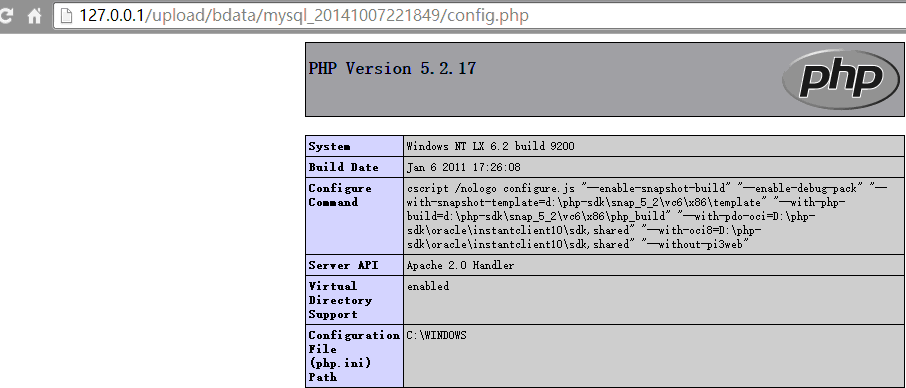 這里shell的路徑就是bdata/mysql_20141007221849/config.php