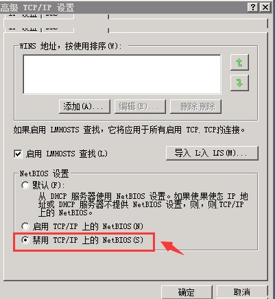 3,打開“TCP/IPV4”屬性,高級選項,WINS選項,選擇“禁用TCP/IP上的NetBIOS”,然后一路點擊“確定”
