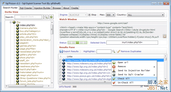 SQL Poizon的圖形界面使用戶無需深厚的專業(yè)知識便能夠進(jìn)行攻擊,SQL Poizon掃描注入工具內(nèi)置瀏覽器可幫助查看注入攻擊帶來的影響。SQL Poizon充分利用搜索引擎“dorks”掃描互聯(lián)網(wǎng)中存在SQL注入漏洞的網(wǎng)站。