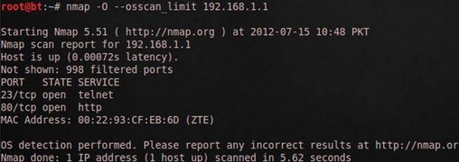 上面的例子清楚地表明,Nmap的首次發(fā)現(xiàn)開放的端口,然后發(fā)送數(shù)據(jù)包發(fā)現(xiàn)遠(yuǎn)程操作系統(tǒng)。操作系統(tǒng)檢測(cè)參數(shù)是O(大寫O)