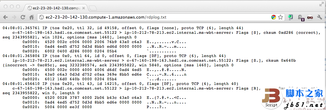 前面TCPDUMP保存到了Apache的虛擬目錄,所以訪問網(wǎng)址就可以查看了,現(xiàn)在你可以看到X客對你的終端服務(wù)做了些什么了.