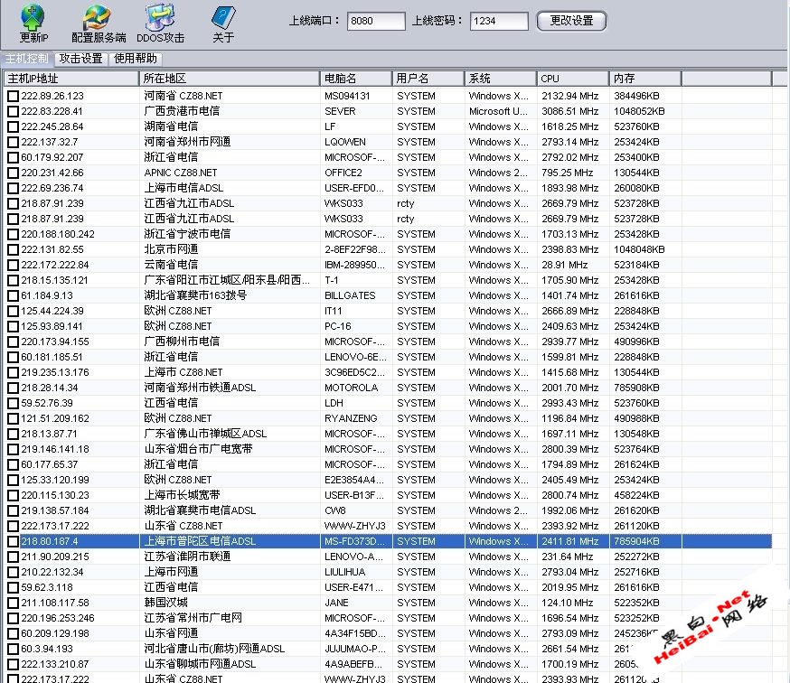 下面我們說說個(gè)人電腦被控制所造成的危害,前段時(shí)間某音樂網(wǎng)站連續(xù)被某黑客攻擊,導(dǎo)致服務(wù)器崩潰,據(jù)說那名黑客控制了兩萬臺(tái)電腦對(duì)該網(wǎng)站進(jìn)行DDOS攻擊。那兩萬臺(tái)電腦的使用者在自己不知情的情況下被黑客利用了