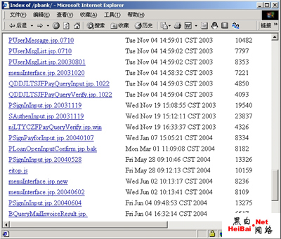 一些很典型的JSP文件和JS文件都列出來(lái)了。大喜之下,隨便選擇一個(gè)文件,點(diǎn)擊右鍵,然后,選擇“用FlashGet下載全部鏈接”選項(xiàng),于是,這個(gè)目錄下的所有文件都被我下載到了本地。