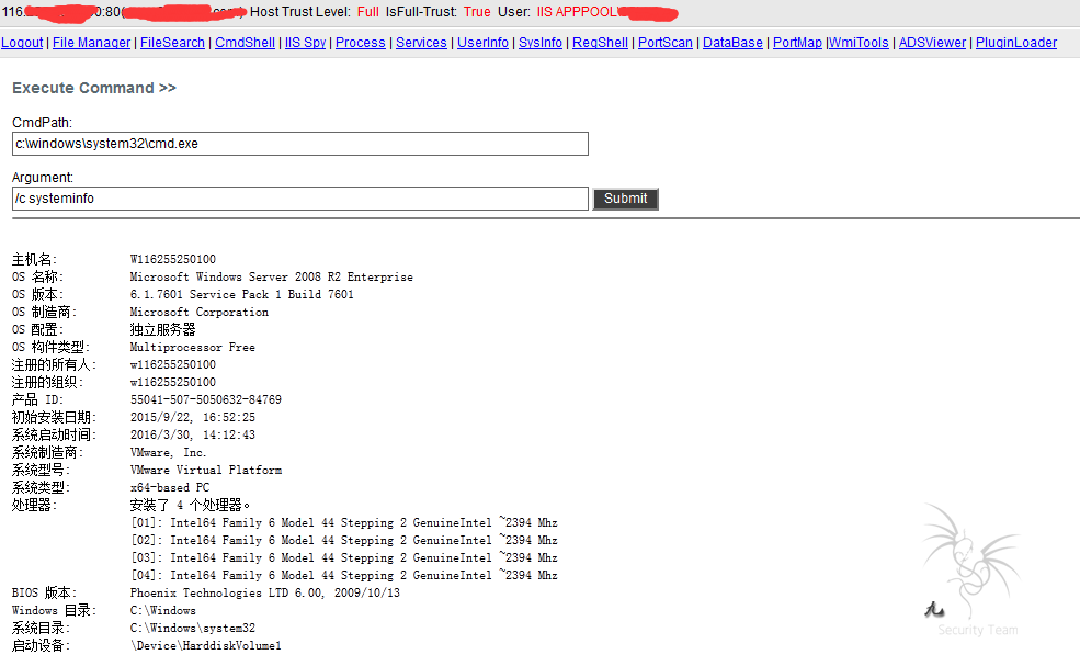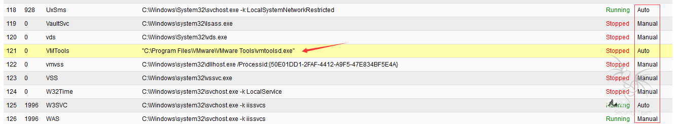 利用ASPXSPY查看下,找啟動方式為auto的,這里就替換vmtools的程序vmtoolsd.exe,當(dāng)然也可以替換其他的比如mysql(降權(quán)就算了),sqlserver等服務(wù),記的再替換回來。
