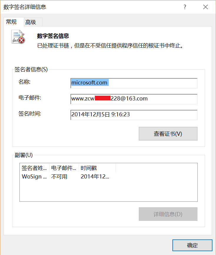 圖2-3. “第一代”病毒仿冒的微軟簽名展示