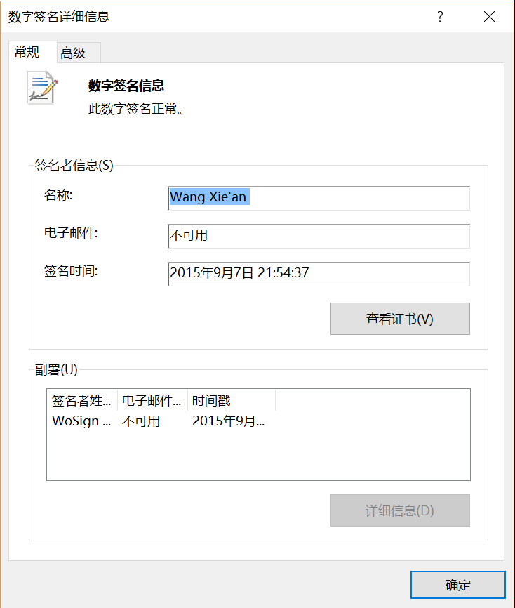 “第二代”病毒為了繞過國內(nèi)個別安全軟件的查殺,每個可執(zhí)行文件都加上自己的簽名。如下圖: