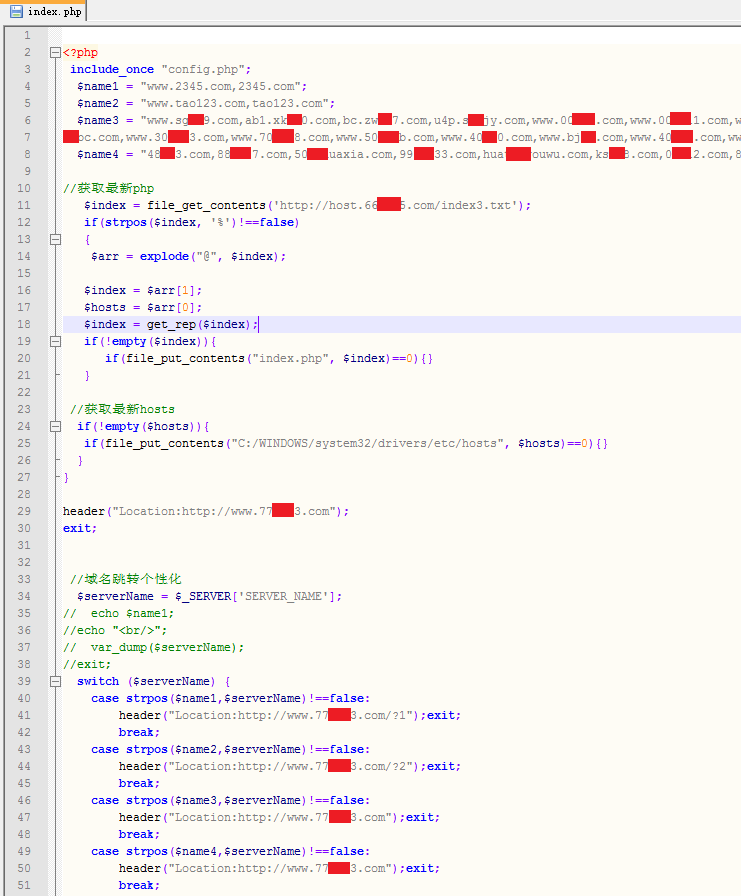 3) 釋放Apache、搭建本地PHP跳轉(zhuǎn)頁面“黑吃黑”:其先下載 http://host.66***5.com/index3.txt 中存放的hosts文件,之后通過修改系統(tǒng)hosts文件將其過濾列表中的網(wǎng)址IP改為“127.0.0.1”(其搭建的跳轉(zhuǎn)頁),最后通過跳轉(zhuǎn)頁跳轉(zhuǎn)至推廣頁面。