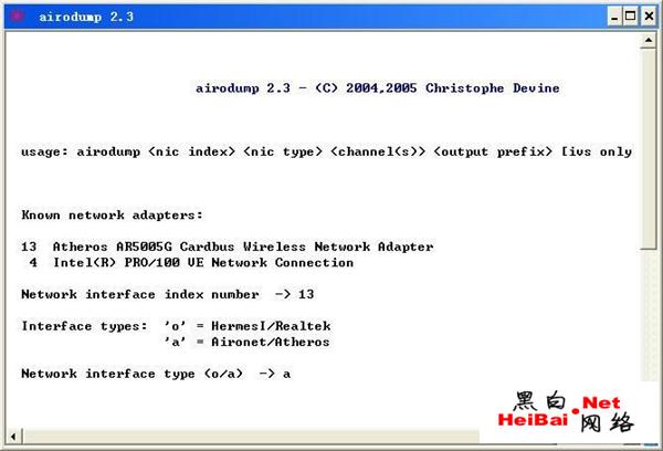 第二步:運行airodump.exe程序,這個就是我們的sniffer小工具,他的正常運行是建立在我們無線網卡已經更新驅動的基礎上。