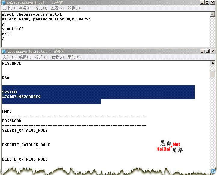 2、Oracle 的弱算法加密機制:兩個相同的用戶名和密碼在兩臺不同的 Oracle 數(shù)據(jù)庫機器中,將具有相同的哈希值。這些哈希值存儲在 SYS.USER$表中??梢酝ㄟ^像 DBA_USERS 這類的視圖來訪問。