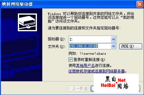 要想映射"限制盤符"驅(qū)動器,請先打開"我的電腦"窗體,選擇受到禁用限制的D盤符,然后在上方單擊"工具"按鈕,選擇映射"網(wǎng)絡(luò)驅(qū)動器"選項,會彈出"映射網(wǎng)絡(luò)驅(qū)動器"對話框,在內(nèi)部"文件夾"標(biāo)簽內(nèi),輸入\\本機(jī)目前處在局域網(wǎng)的IP地址\要映射的盤符驅(qū)動器$(如圖2)。操作完畢后,單擊"確定"按鈕,即可在"硬盤"欄目,多出一個名為"網(wǎng)絡(luò)硬盤驅(qū)動器Z"的虛擬盤,而且里面所含有的文件,全都是禁用D盤內(nèi)的文件,在其盤符內(nèi)不管做任何操作,都不會影響到D盤的原有文件以及其"限制屬性"問題。