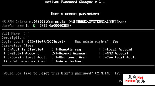 軟件詢問是否清除密碼。按Y后回車確認(rèn)。