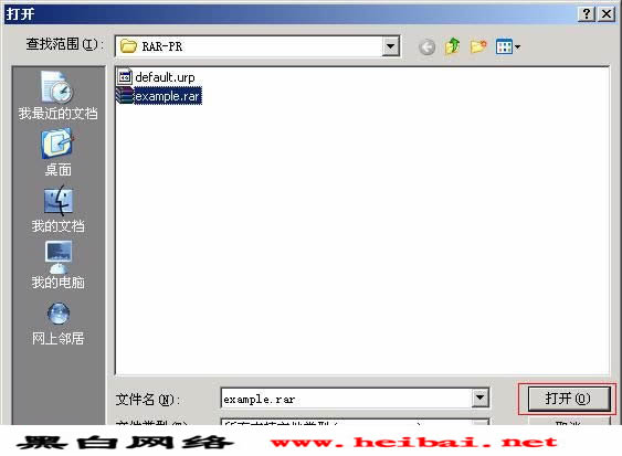 ”圖標,彈出打開對話框,在此對話框內(nèi)選擇要破解的RAR文件,然后點擊“打開”按鈕。如圖3所示。