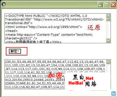 在瀏覽器中打開網(wǎng)馬,這個網(wǎng)馬的功能比較簡單,主要用來上傳功能更強的網(wǎng)馬。比較有特色的是可以在目標網(wǎng)頁的上傳漏洞,自己修改修改配置。查看該網(wǎng)馬的源代碼,發(fā)現(xiàn)該網(wǎng)馬加密了,很明顯是用ASC加密。(圖1)