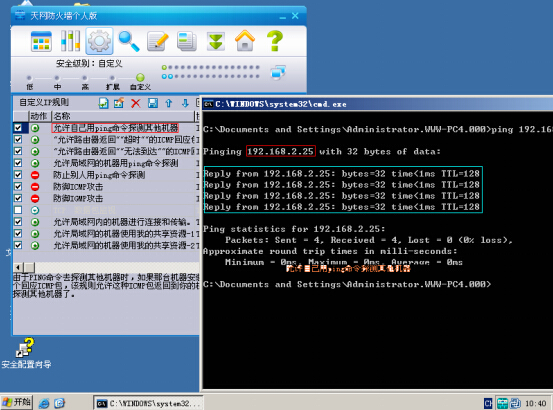 通過以上內容的學習,實際操作天網防火墻的設置,并對其有了深入的了解,接著通過禁止局域網用戶使用PING命令對本機進行嗅探;禁止本地QQ登錄及應用;禁止本地用戶使用PING命令三個小實驗進行鞏固知識點,通過這一軟件了解網絡防火墻的作用。