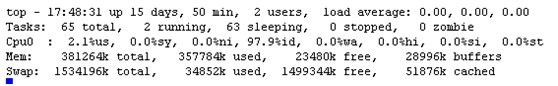 PHP未打補丁前,服務(wù)器CPU情況,目前是2.1%的使用率。