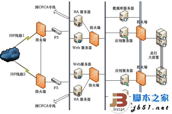 圖1 網(wǎng)銀系統(tǒng)拓?fù)鋱D (來源:developerWorks)關(guān)于拓?fù)浣Y(jié)構(gòu),文章指出了幾個(gè)關(guān)鍵點(diǎn):