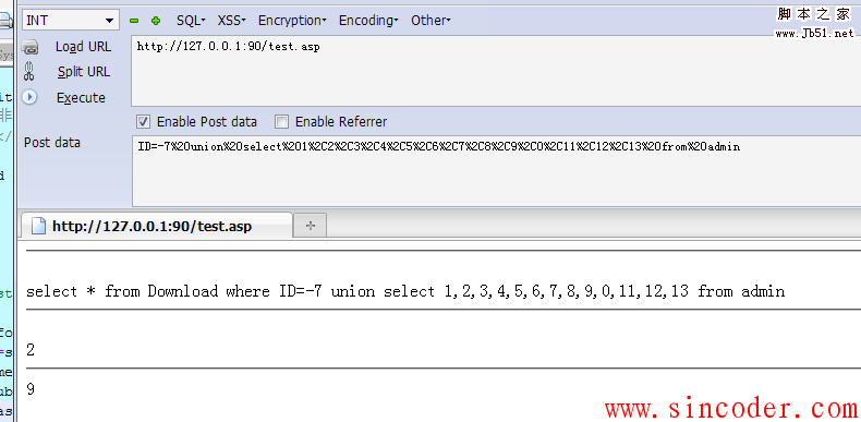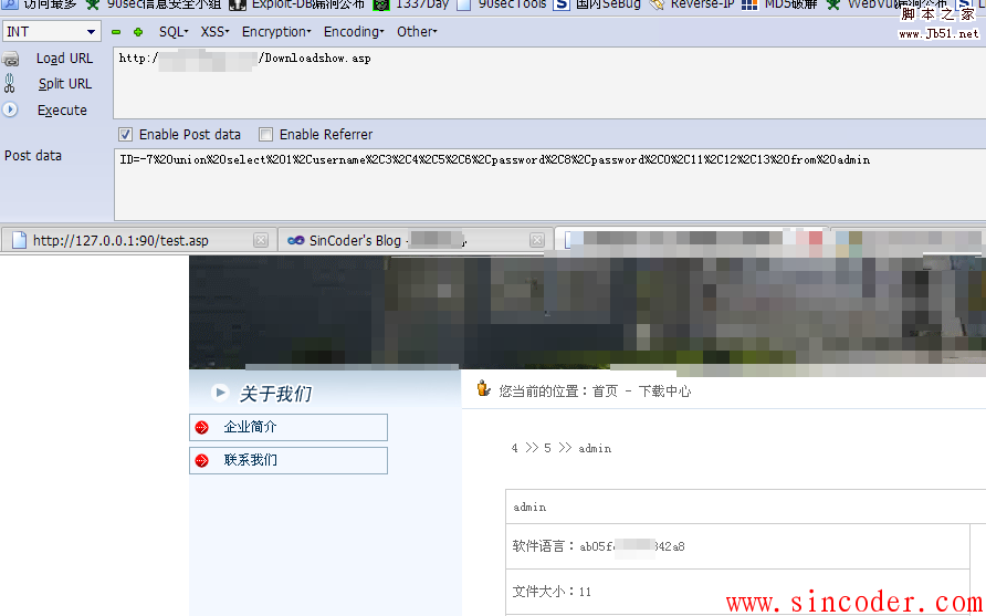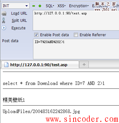 然后 downloadshow.asp 中 使用request("ID")仍然可以獲取正確的ID值 ,和直接 GET?。痙ownloadshow.asp?ID=111 的效果是一樣的,但是這樣的話 對于上面的那個 sql 注入檢測程序 ,卻會把這樣的數(shù)據(jù)當(dāng)作是POST提交的數(shù)據(jù) ,再加上不到位的檢測 ,sql注入漏洞就產(chǎn)生了,如下圖所示:
