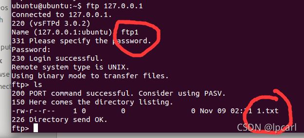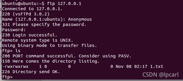 ftp 127.0.0.1 然后輸入用戶名 Anonymous 最后輸入ls如果初現(xiàn)如圖所示的效果即代表創(chuàng)建成功
