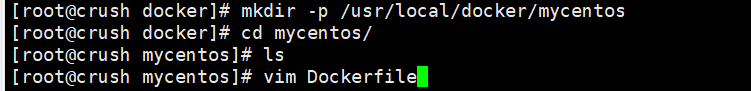 mkdir -p /usr/local/docker/mycentos # 自己創(chuàng)建存放的位置vim Dockerfile