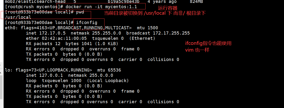 docker pull centos # 拉取鏡像docker run -it centos #運(yùn)行鏡像# ===== 測(cè)試====vim ceshi.txtifconfig pwd