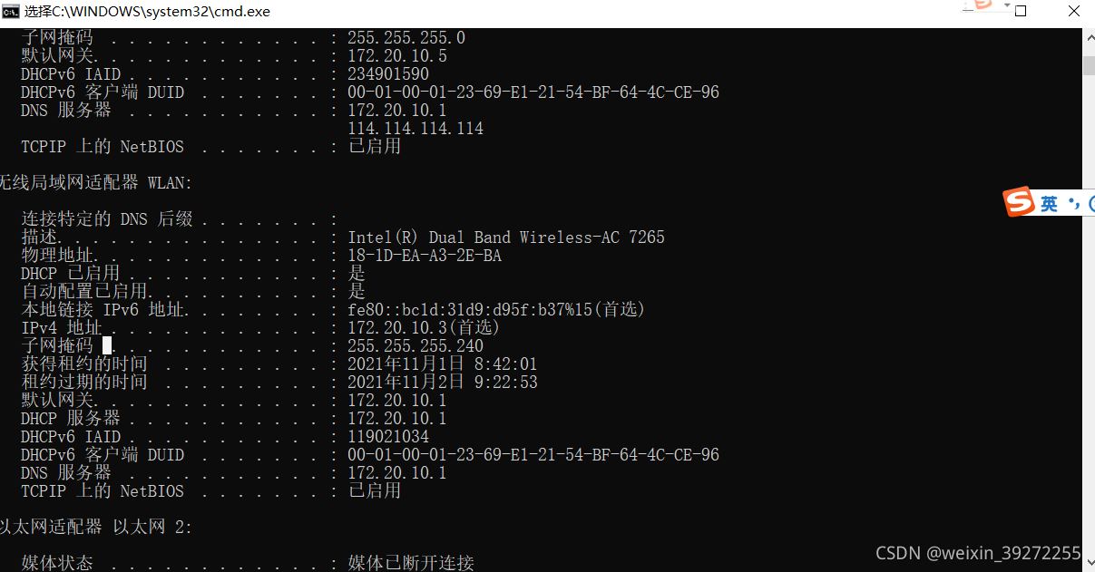 4.查看主機(jī)IP信息并記錄,打開CMD窗口,輸入以下命令