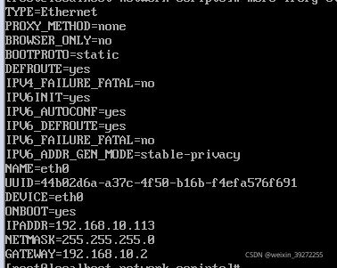 **命令執(zhí)行:**vi /etc/sysconfig/network-scripts/ifcfg-ens33