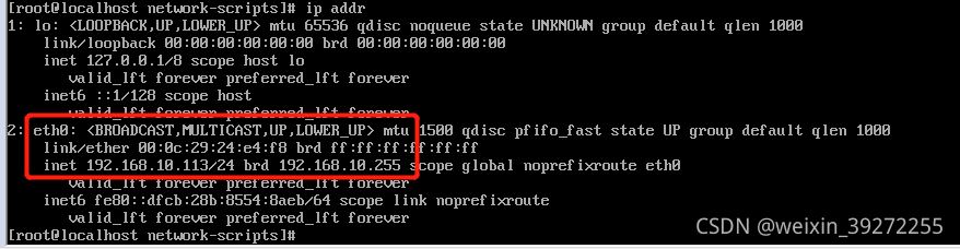 輸入i進(jìn)入編輯模式,修改后esc退出編輯模式,mv ifcfg-ens33 ifcfg-eth0