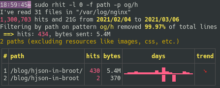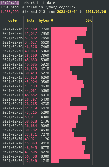 可以按照日期、響應(yīng)值、請求來源等進(jìn)行過濾匹配,并進(jìn)行分析,Rhit 具有很高的效率,每秒可以處理百萬行日志數(shù)據(jù)。