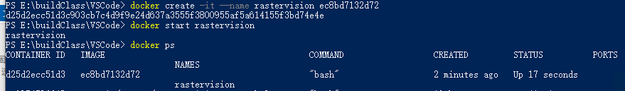 docker create -it --name [name] [鏡像id] docker start [name]