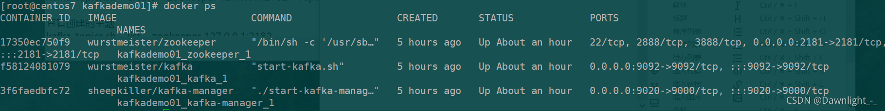 因?yàn)楦甙姹镜膋afka內(nèi)置了zookeeper,所以我們無(wú)需進(jìn)入zookeeper容器。所以yml文件中關(guān)于zookeeper的部署是可以省略的。