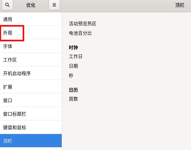 搜索gnome-tweaks,打開gnome優(yōu)化程序。