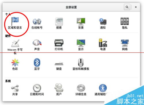 2、從右上角打開設(shè)置中心。然后進(jìn)入“區(qū)域和語言”設(shè)置。