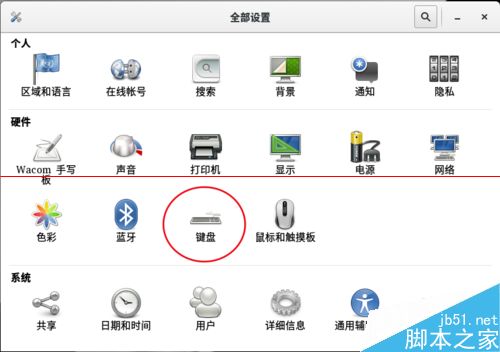 3、找到“鍵盤”按鈕并打開。
