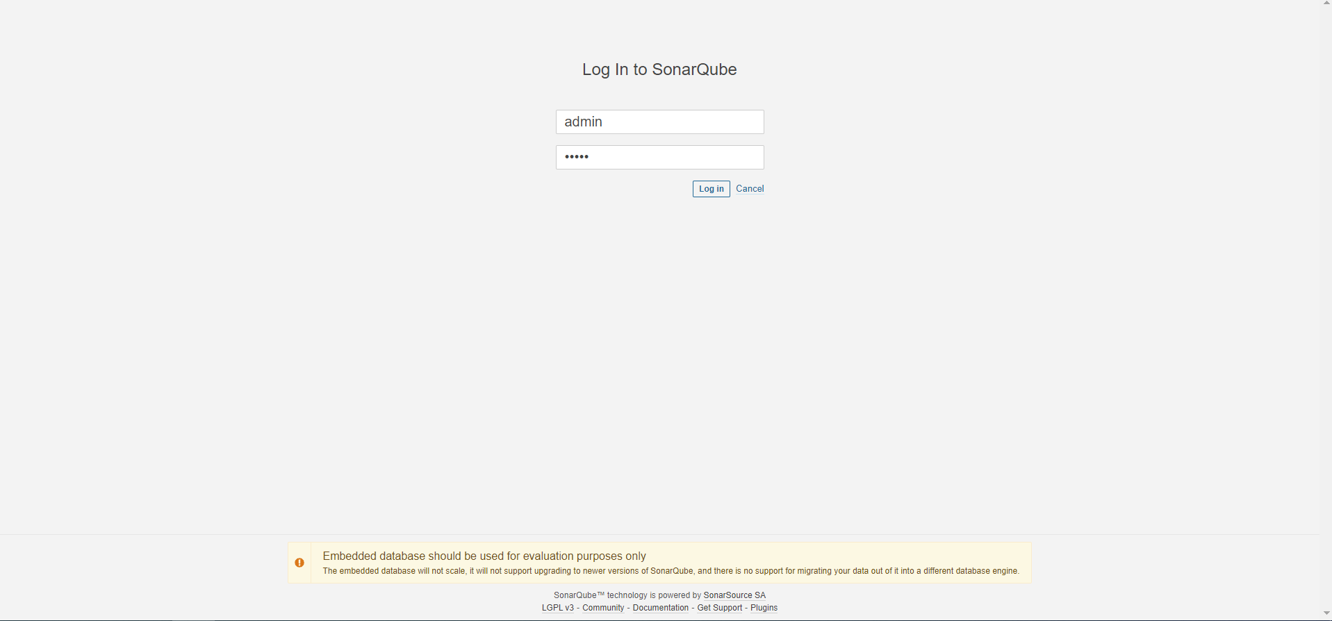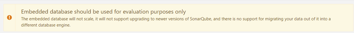嵌入式數(shù)據(jù)庫應(yīng)僅用于評估目的、嵌入式數(shù)據(jù)庫無法擴(kuò)展,不支持升級到SonarQube的較新版本,也不支持將數(shù)據(jù)從中遷移到其他數(shù)據(jù)庫引擎。