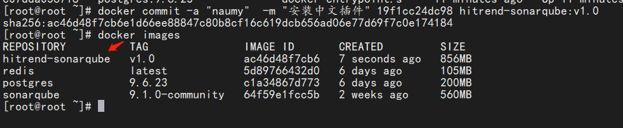 # 保存已經(jīng)修的鏡像 docker commit -a "naumy" -m "安裝中文插件" 19f1cc24dc98 hitrend-sonarqube:v1.0 # 把舊鏡像的名字,改成倉庫要求的新版名字 docker tag hitrend-sonarqube:v1.0 naumy/hitrend-sonarqube:v1.0 # 登錄到docker hub docker login # 推送 docker push naumy/hitrend-sonarqube:v1.0