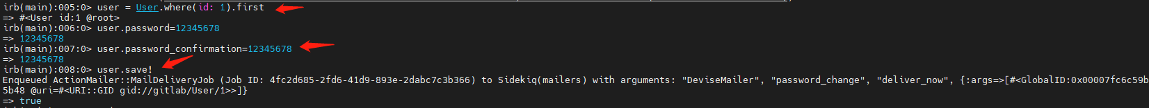 Enqueued ActionMailer::MailDeliveryJob (Job ID: 4fc2d685-2fd6-41d9-893e-2dabc7c3b366) to Sidekiq(mailers) with arguments: "DeviseMailer", "password_change", "deliver_now", {:args=>[#<GlobalID:0x00007fc6c59b5b48 @uri=#<URI::GID gid://gitlab/User/1>>]}