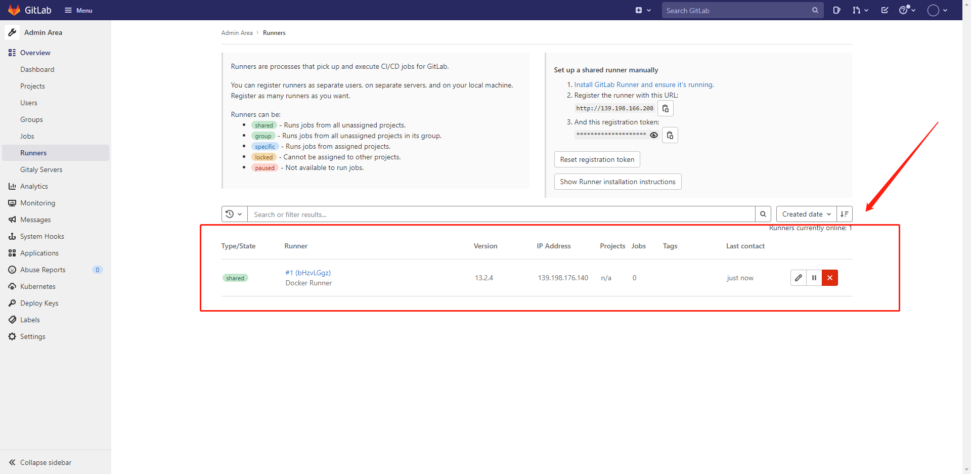 # 拉取鏡像 docker pull gitlab/gitlab-runner:v13.2.4 # 創(chuàng)建容器映射目錄 mkdir -p /dwz/docker-volume/gitlab-runner/config # 創(chuàng)建容器并運行 docker run -d --name gitlab-runner \ --restart always \ -v /dwz/docker-volume/gitlab-runner/config:/etc/gitlab-runner \ -v /var/run/docker.sock:/var/run/docker.sock \ gitlab/gitlab-runner:v13.2.4